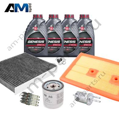 В Наборе ТО собраны оригинальные расходные материалы для прохождения ТО (фильтры и свечи) и масло LUKOil Special A3/B4 5w40 с допуском VAG 502 00/505 00.