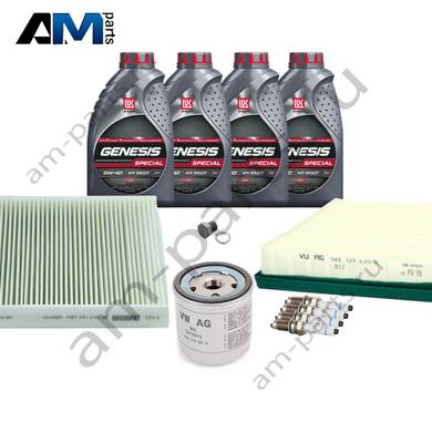 В Наборе ТО собраны оригинальные расходные материалы для прохождения ТО (фильтры и свечи) и масло LUKOil Special A3/B4 5w40 с допуском VAG 502 00/505 00.