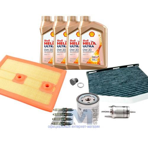 Состав набора ТО: Масло моторное Shell Helix 0W30 (допуск 502/505 или AV-L 504/507) - 4 л.Фильтр масляный 04E115561H- 1 шт.Фильтр воздушный 04E129620- 1 шт.Фильтр салонный JZW819653B- 1 шт.Пробка масляного поддона N90288901 + кольцо N0138157- 1 шт.