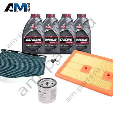 В Наборе ТО собраны оригинальные расходные материалы для прохождения ТО (фильтры и свечи) и масло LUKOil Special vn 5w-30 с допуском VAG 504 00/507 00.