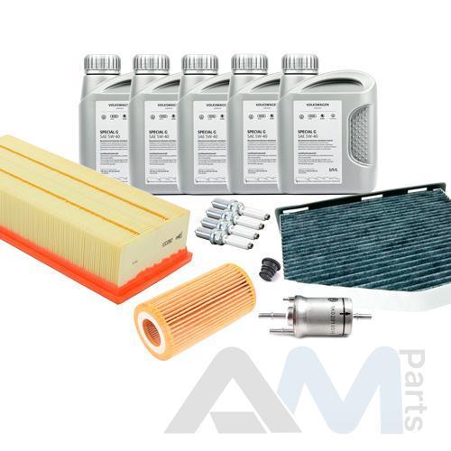 Состав набора ТО: Оригинальное моторное масло VAG- Special C 0W30 (допуск 502/505)- 5 л.Оригинальный масляный фильтр 06L115562B- 1 шт.Оригинальный воздушный фильтр 5C0129620- 1 шт.Оригинальный салонный фильтр JZW819653B- 1 шт.Пробка масляного поддона N91167901 + кольцо N0138157- 1 шт.Оригинальные свечи зажигания 06K905601B- 4 шт.Оригинальный топливный фильтр 1K0201051K- шт.