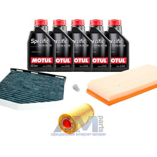 Состав набора ТО: Масло моторное Castrol Edge Professional LL III 5W30 (504/507) или 0W30 (502/505) или Shell Helix Ultra- 5 л. Фильтр масляный- 1 шт. Фильтр воздушный- 1 шт. Фильтр салона- 1 шт.Свечи зажигания- 4 шт. Фильтр топливный- 1 шт. Пробка масляного поддона с кольцом- 1 шт.