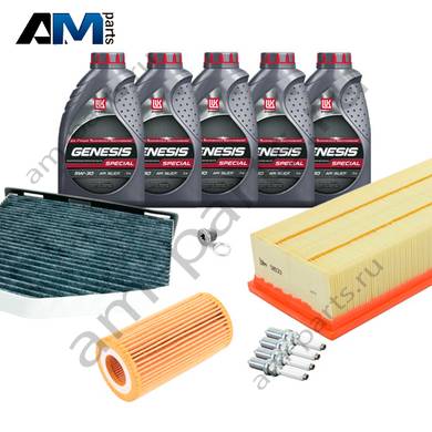 Состав набора ТО: Масло моторное Castrol Edge Professional LL III 5W30 (504/507) или 0W30 (502/505) или Shell Helix Ultra- 5 л. Фильтр масляный- 1 шт. Фильтр воздушный- 1 шт. Фильтр салона- 1 шт.Свечи зажигания- 4 шт. Фильтр топливный- 1 шт. Пробка масляного поддона (пластик)- 1 шт.