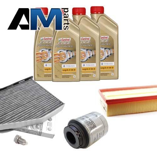 Состав набора ТО: Масло моторное Castrol Edge Professional LL III 5W30 (504/507) или 0W30 (502/505) или Shell Helix Ultra- 4 л. Фильтр масляный- 1 шт. Фильтр воздушный- 1 шт. Фильтр салона- 1 шт.Свечи зажигания- 4 шт. Пробка масляного поддона с кольцом- 1 шт.
