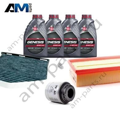 Состав набора ТО: Масло моторное Castrol Edge Professional LL III 5W30 (504/507) или 0W30 (502/505) или Shell Helix Ultra- 4 л. Фильтр масляный- 1 шт. Фильтр воздушный- 1 шт. Фильтр салона- 1 шт.Свечи зажигания- 4 шт. Пробка масляного поддона с кольцом- 1 шт.