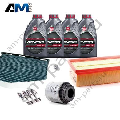 В Наборе ТО собраны оригинальные расходные материалы для прохождения ТО (фильтры и свечи) и масло LUKOil Special vn 5w-30 с допуском VAG 504 00/507 00.