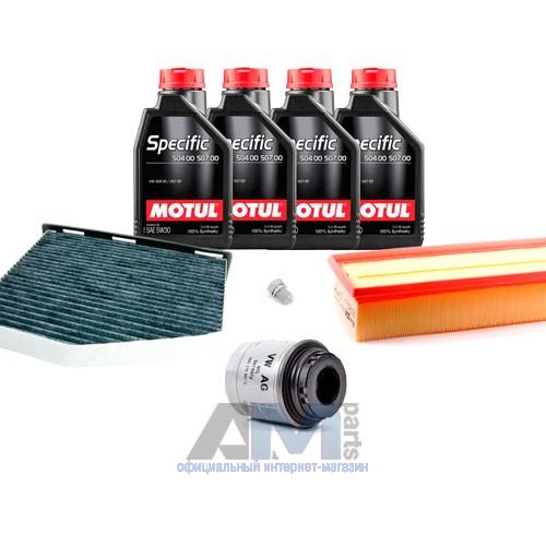 Состав набора ТО: Масло моторное Motul 5W30 (504/507) или 5W30 (502/505)- 4 л.Фильтр масляный 03C115561H- 1 шт.Фильтр воздушный 1K0129620D- 1 шт.Фильтр салона угольный JZW819653B- 1 шт.Пробка масляного поддона N90813202- 1 шт.Свечи зажигания 03C905601B- 4 шт.