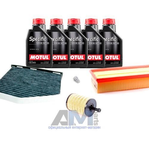 Состав набора ТО: Масло моторное Motul 5W30 (504/507)- 5 л.Фильтр масляный 071115562C- 1 шт.Фильтр воздушный 1K0129620D- 1 шт.Фильтр салона угольный JZW819653B- 1 шт.Пробка масляного поддона N90813202- 1 шт.Фильтр топливный 7N0127177B- 1 шт.