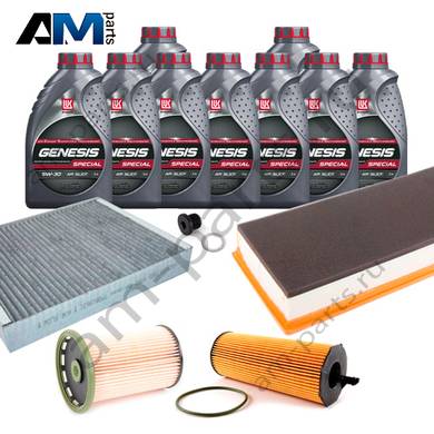 Состав набора ТО: Масло моторное Castrol Edge Professional LL III 5W30/Shell Helix 0W30 (504/507)- 9 л. Фильтр масляный- 1 шт. Фильтр воздушный- 1 шт. Фильтр салона- 1 шт. Пробка масляного поддона с кольцом- 1 шт.