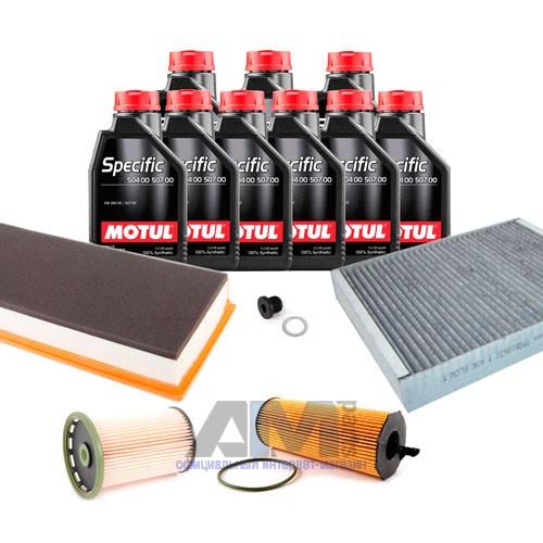 Состав набора ТО: Масло моторное Motul 5W30 (504/507)- 9 л.Фильтр масляный 057115561M- 1 шт.Фильтр воздушный 7P0129620A- 1 шт.Фильтр салона угольный 7P0819631- 1 шт.Пробка масляного поддона N0160276 + кольцо N0138157- 1 шт.