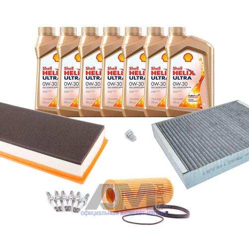 Состав набора ТО: Масло моторное Shell Helix 0W30 (допуск 502/505 или AV-L 504/507) - 7 л. Фильтр масляный 021115562A- 1 шт. Фильтр воздушный 7P0129620A- 1 шт. Фильтр салона угольный 7P0819631- 1 шт. Пробка масляного поддона N90813202- 1 шт.