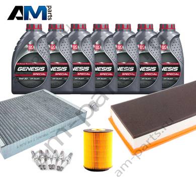 В Наборе ТО собраны оригинальные расходные материалы для прохождения ТО (фильтры и свечи) и масло LUKOil Special vn 5w-30 с допуском VAG 504 00/507 00.