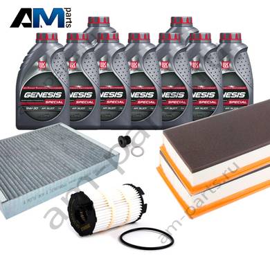 Состав набора ТО: Масло моторное Castrol Edge Professional LL III 5W30 (504/507) или 0W30 (502/505) или Shell Helix Ultra- 9 л. Фильтр масляный- 1 шт. Фильтр воздушный- 2 шт. Фильтр салона- 1 шт. Пробка масляного поддона с кольцом- 1 шт.