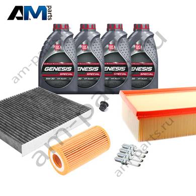 Состав набора ТО: Масло моторное Castrol Edge Professional LL III 5W30 (504/507) или 0W30 (502/505) или Shell Helix Ultra- 4 л. Фильтр масляный- 1 шт. Фильтр воздушный- 1 шт. Фильтр салона- 1 шт.Свечи зажигания- 4 шт. Пробка масляного поддона (пластик)- 1 шт.