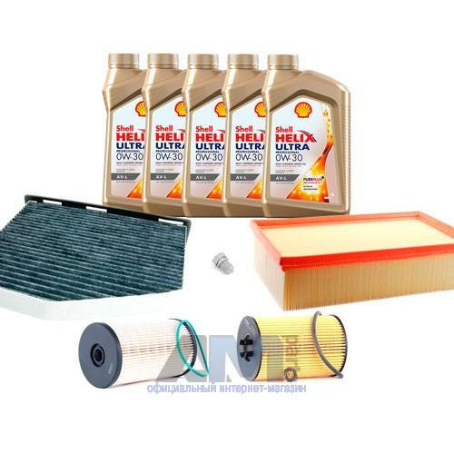 В Наборе ТО собраны оригинальные запчасти Фольксваген и масло Shell Helix Ultra 0W30 AV-L (допуск VW 504 00/507 00). Наборы составлены согласно рекомендациям VAG.