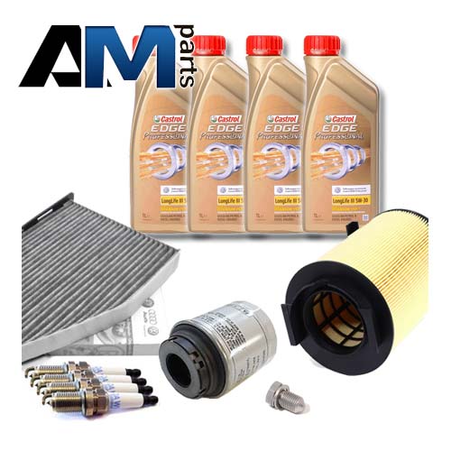 Набор соствлен из фильтров производства Filtron (Польша) и моторного масла Shell 0W30 или Castrol 5W30/0W30 (допуск 502.00/505.00 или 504.00/507.00).