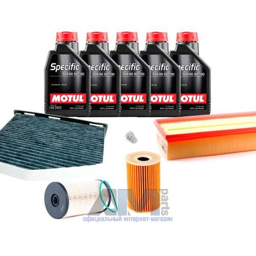 Состав набора ТО: Масло моторное Castrol Edge Professional LL III 5W30/Shell Helix 0W30 (504/507)- 5 л. Фильтр масляный- 1 шт. Фильтр воздушный- 1 шт. Фильтр салона- 1 шт.Фильтр топливный- 1 шт. Пробка масляного поддона с кольцом- 1 шт.