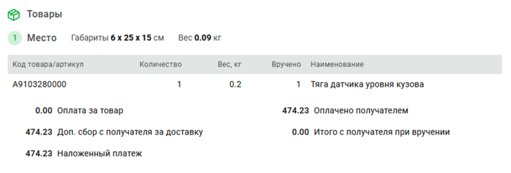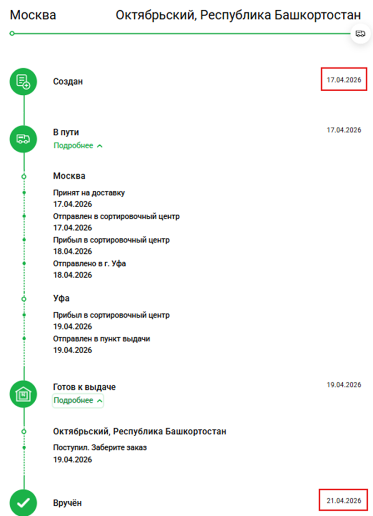 Ниже приведен скрин исполнения заказа в СДЭК от момента создания заказа до момента доставки посылки в пункт выдачи.